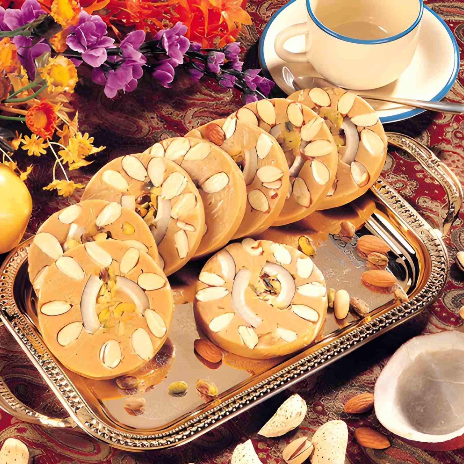 Discover the bold and irresistible flavor of WeNamkeen Karrak Sohan Halwa, a premium twist on the classic treat. "Karrak" means crispy — and this halwa lives up to its name with a firm, brittle texture that melts deliciously in your mouth. It's an indulgence inspired by heritage and perfected for modern tastebuds.